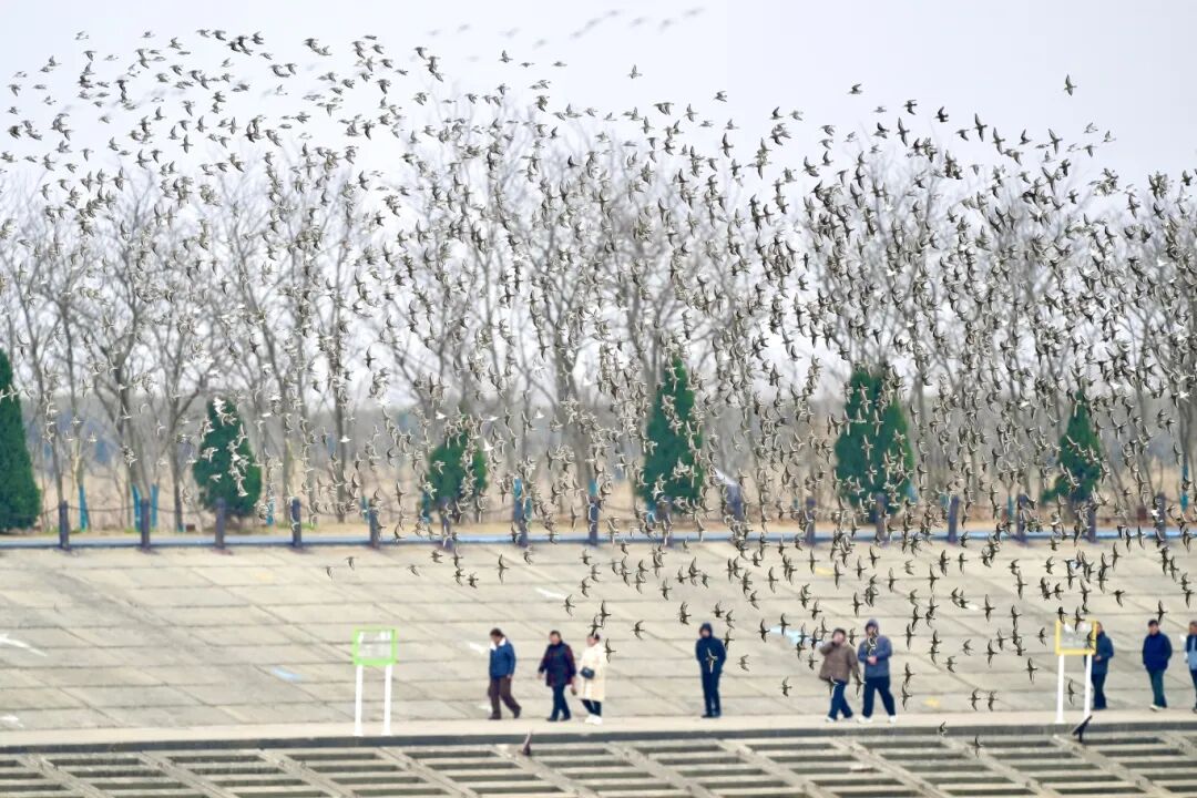 As temperatures rise recently, Tiaozini in Dongtai has welcomed a large number of migratory birds stopping over during their spring migration. Tens of thousands of birds have arrived one after another.