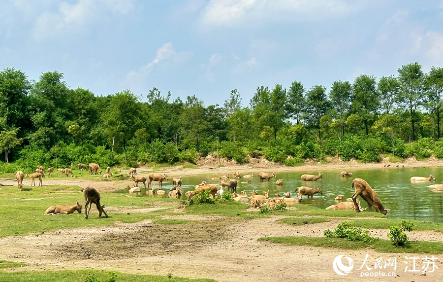 Milu deer search for food at a milu deer park in Dafeng district, Yancheng city, east China's Jiangsu Province. (People's Daily Online/Zhou Mengjiao)