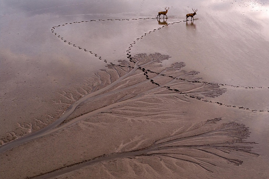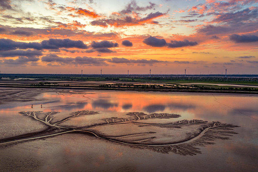 This photo, taken on July 12, 2025, shows the tide-sculpted mudflats in Dafeng Milu National Nature Reserve in Yancheng City, Jiangsu Province. Some of the formations resemble towering trees, demonstrating the nature’s extraordinary craftsmanship. (Photo/CFP)