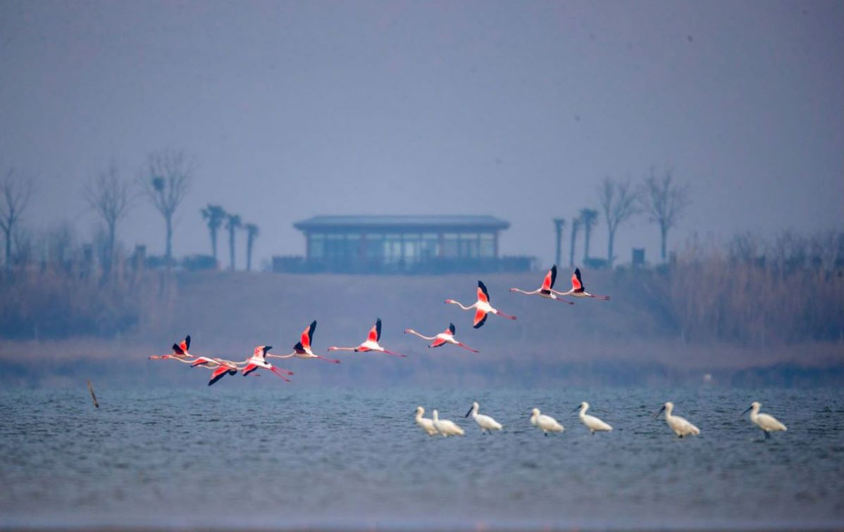 "We have even observed 11 flamingos this year, which was rarely seen at the flat before, maybe accidently one or two in 2018, said Lyu. "As the ecology improves, more and more birds are attracted to come and stay here."