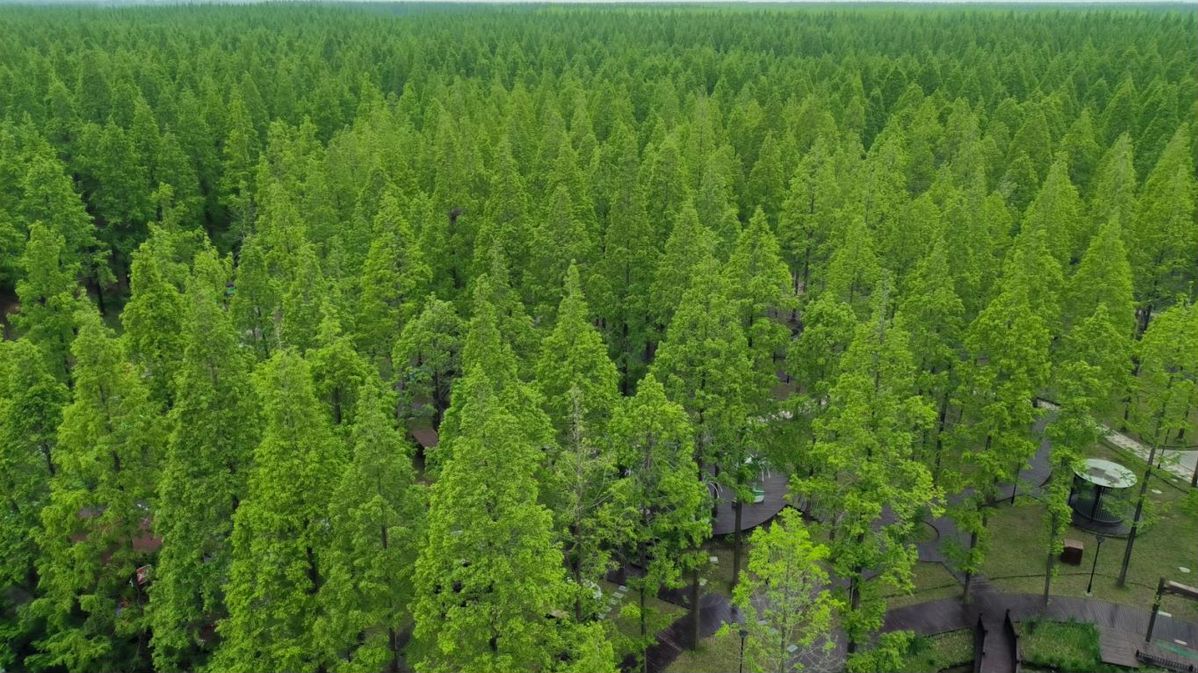 A bird's eye view of the Yellow Sea Forest Park in Dongtai city, Yancheng city, East China's Jiangsu province, April 25, 2023. [Photo/chinadaily.com.cn]
